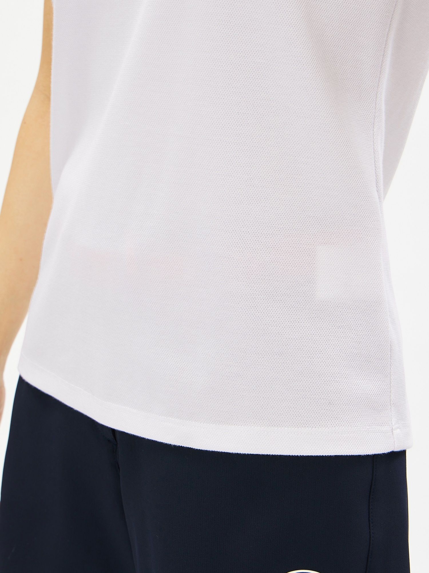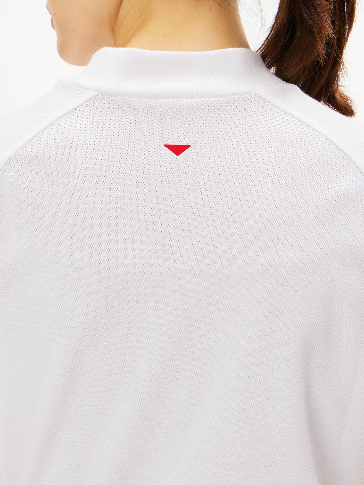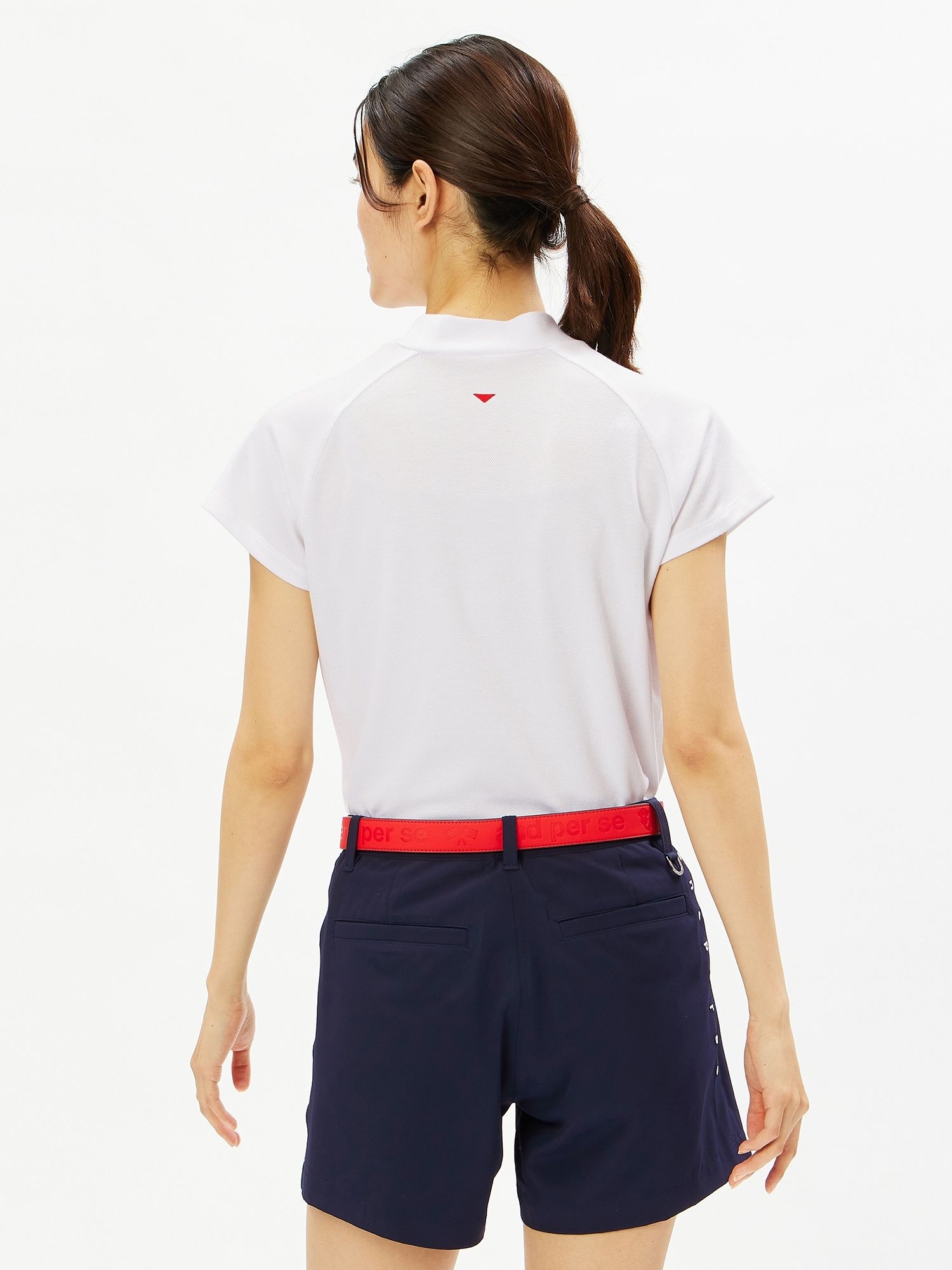 This short-sleeve mock neck shirt is made from sustainable materials, a blend of sweat-absorbing and quick-drying recycled polyester yarn and organic cotton, and features a lightweight, breathable, dry-touch pique mesh structure that is comfortable to wear.