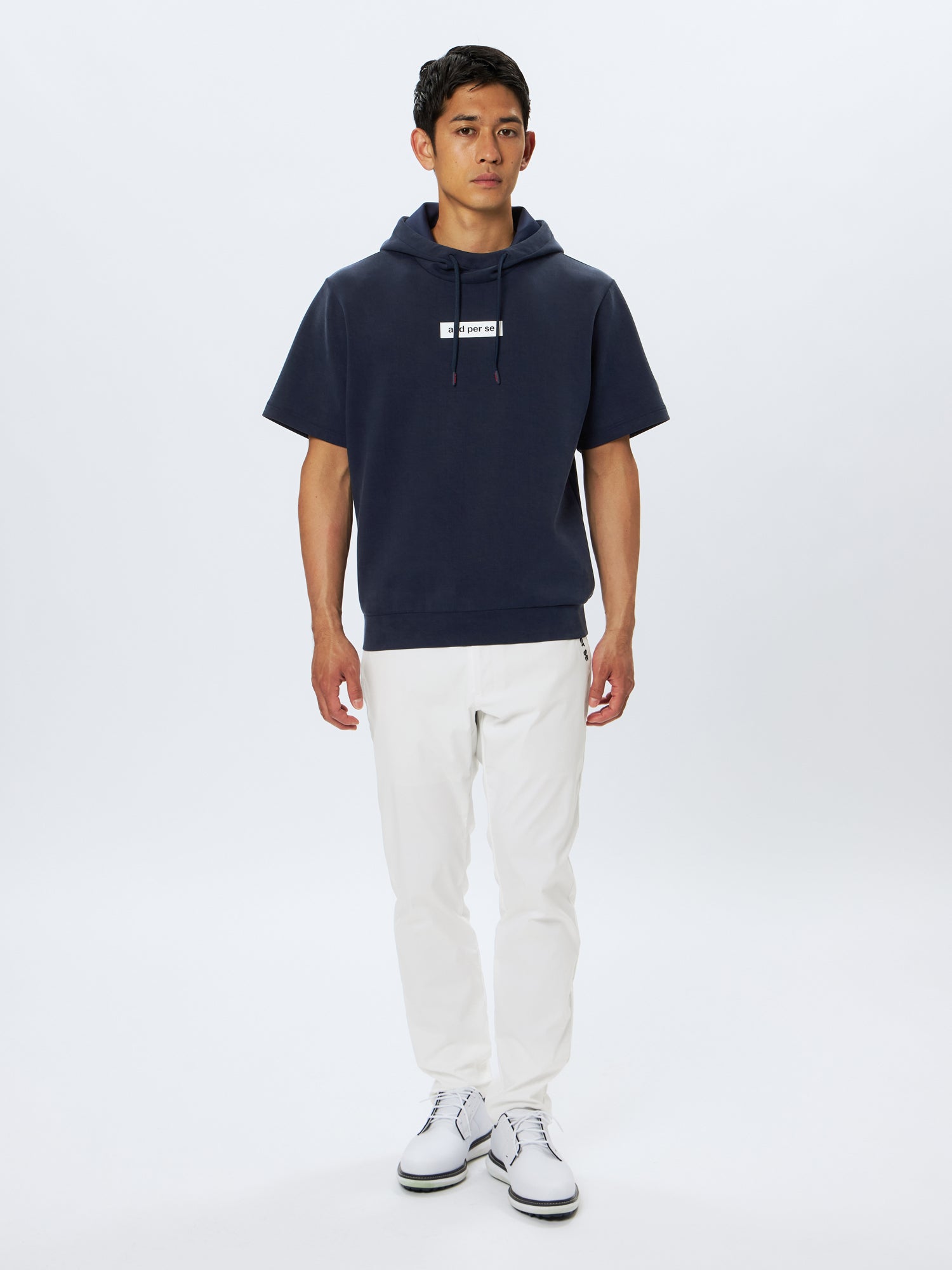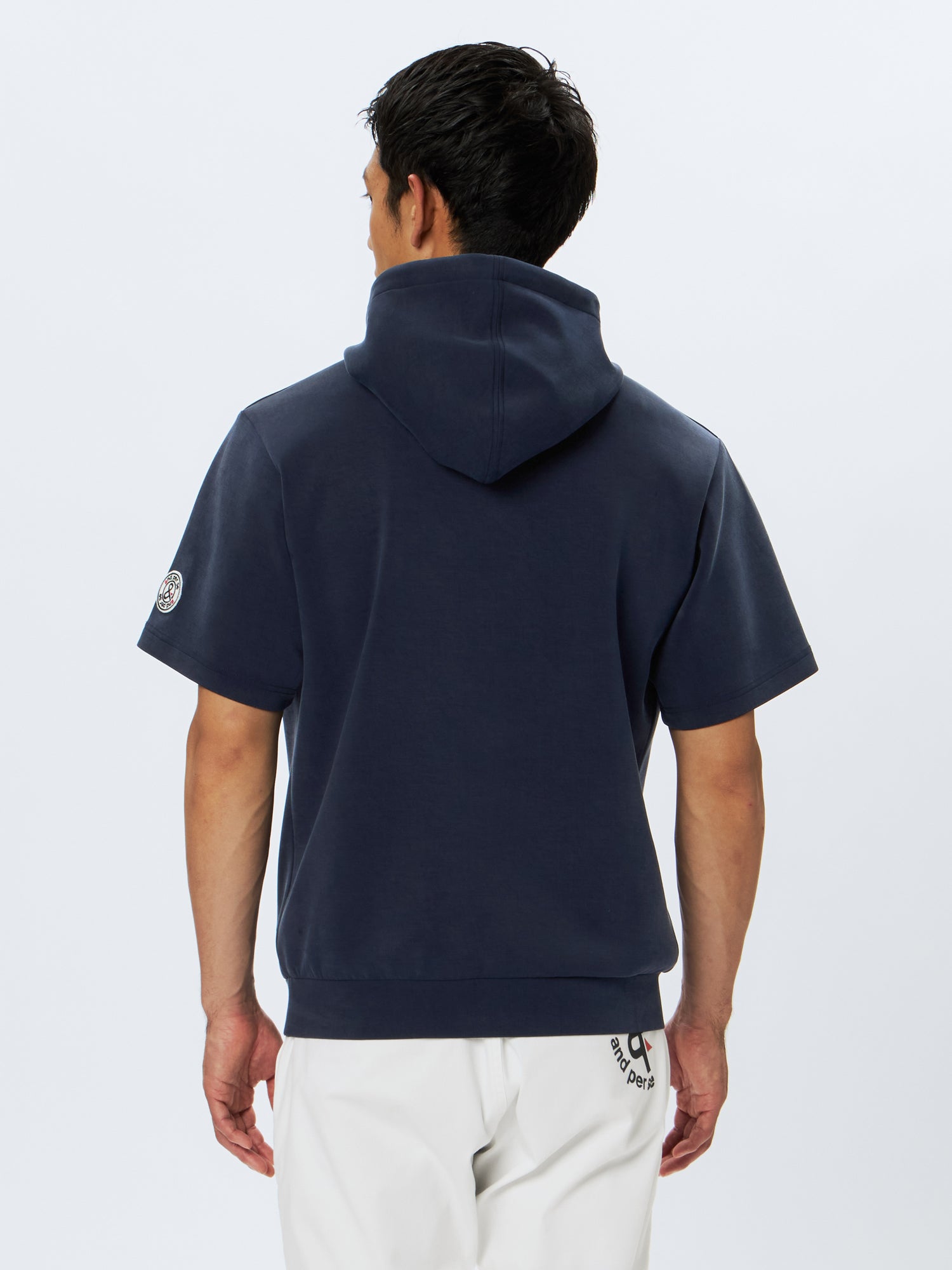 This short-sleeved hooded pullover from Shot Smoother Sweat combines exceptional stretch with a comfortable feel. Crafted from lightweight cardboard knit fabric (partially made with environmentally friendly recycled PET polyester yarn) that's incredibly soft and smooth against the skin, it offers multi-stretch properties and UV protection (UPF 50+, blocking over 95% of UV rays). The slightly wider body allows for a more comfortable swing. This piece allows for a variety of layered styles, allowing you to adjust the inner layer to suit the temperature.