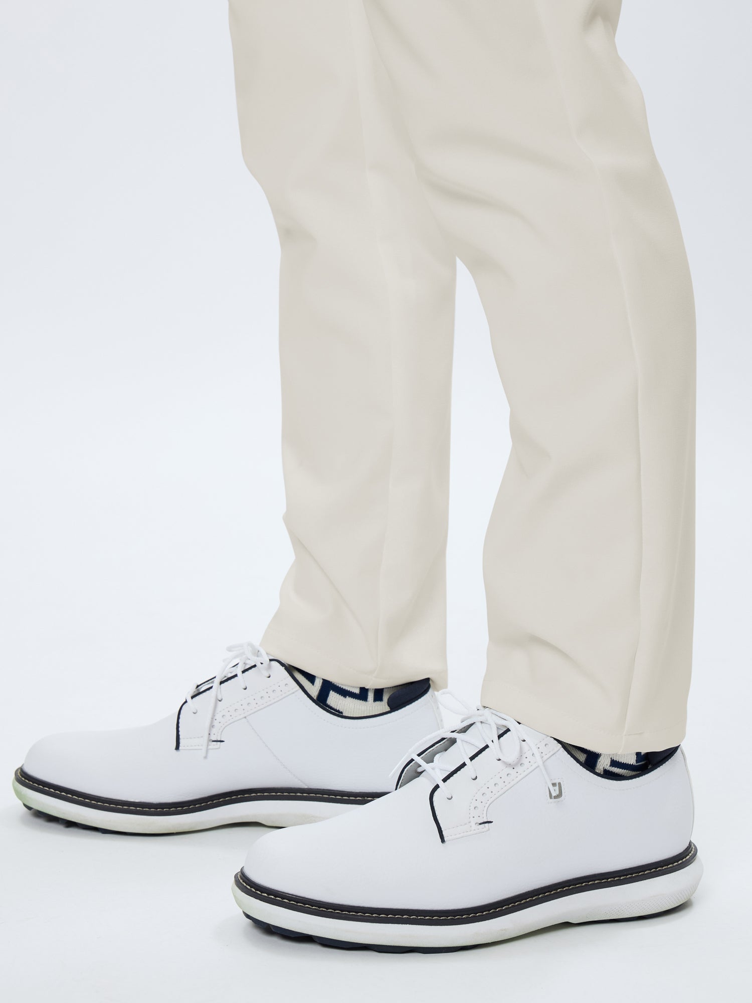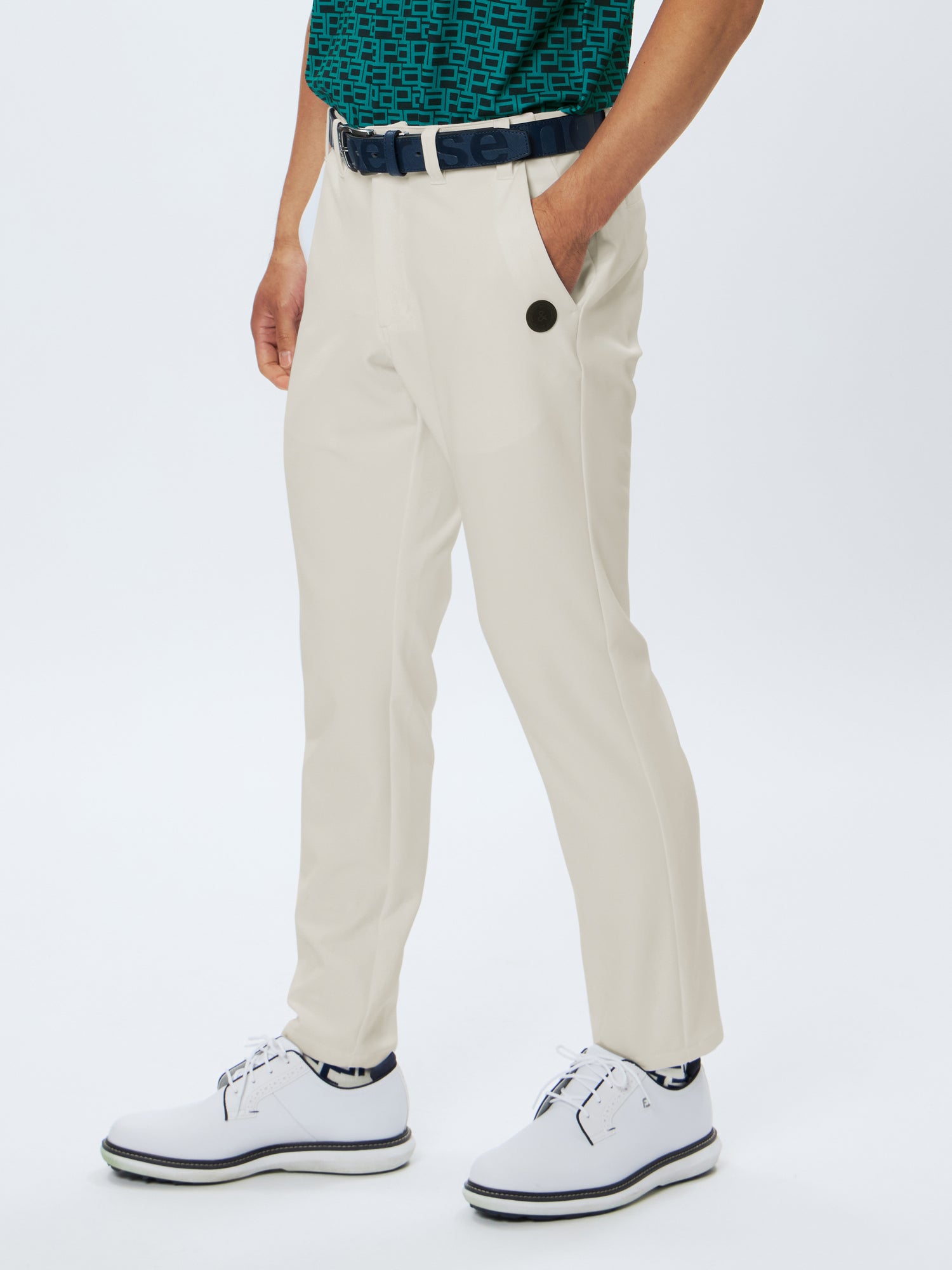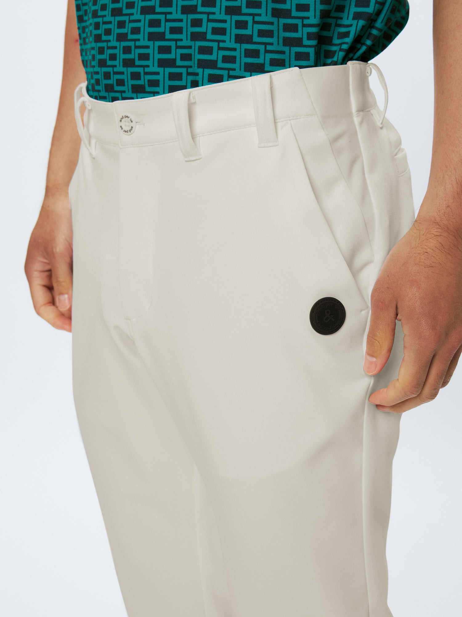 These high-quality golf slacks from our brand's new line are made with stretchy, UV-protective material (UPF 50+, blocking over 95% of UV rays). Multi-stretch, quick-drying, and UV protection ensure a comfortable playing experience. The triangular gusset at the waist provides stretch and helps keep the waist in place. These pants are simple yet feature intricate details. While these slacks are simple, the waist design and texture of the fabric make them a premium piece. The logo is minimal, making them suitable for a variety of occasions. Experience the brand's premium new line. Inseam: M (75cm), L (76cm), LL (77cm)